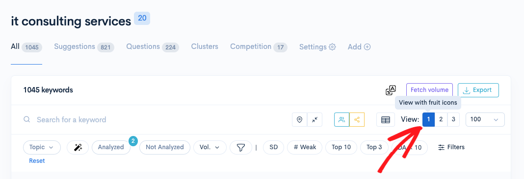You need to be in the View with fruit icons mode to see the fruit icons. Click on the 1 next to View shown below: