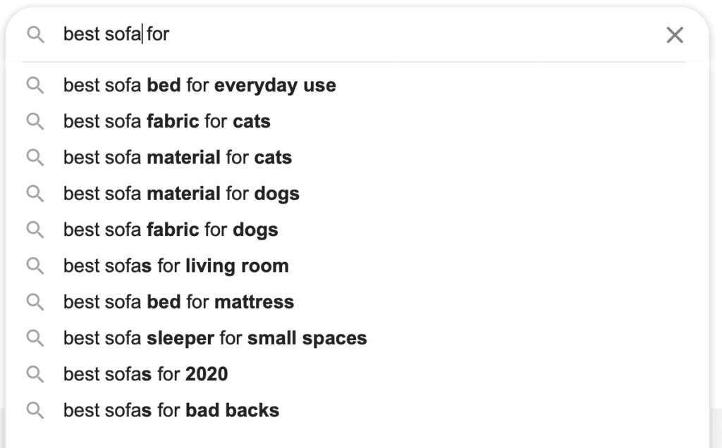 They’re aware of their problem, and they’re actively looking to purchase a product – making ‘sofa for back pain’ a high-intent keyword you can leverage in your SEO strategy.
