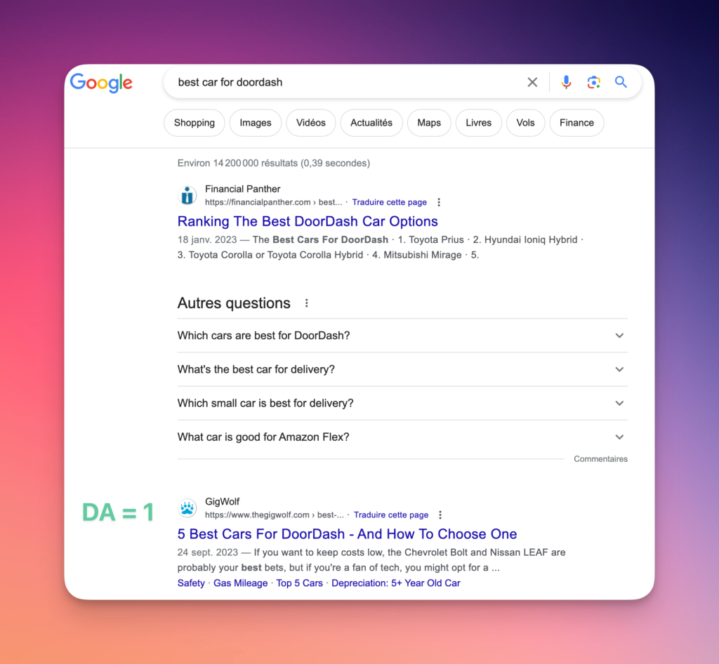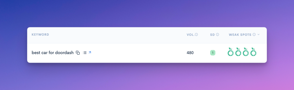 Take the keyword “best car for doordash” as an example.