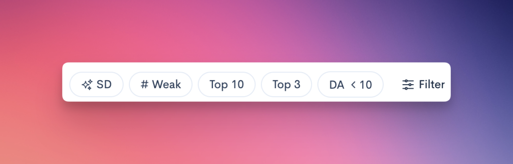 When analyzing keywords in bulk, use the SERP analysis filters to navigate the results.